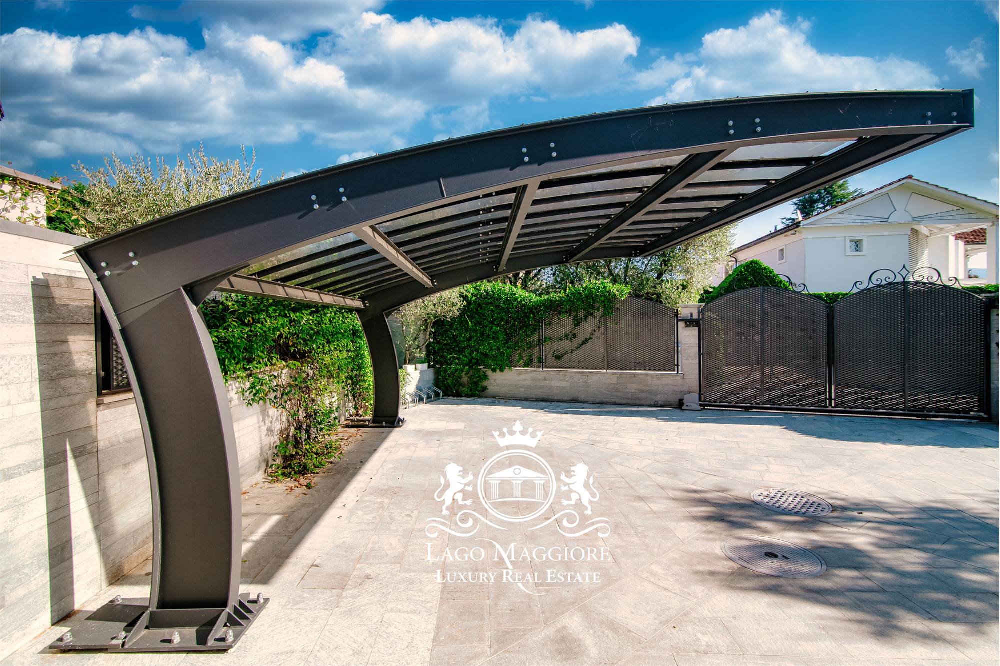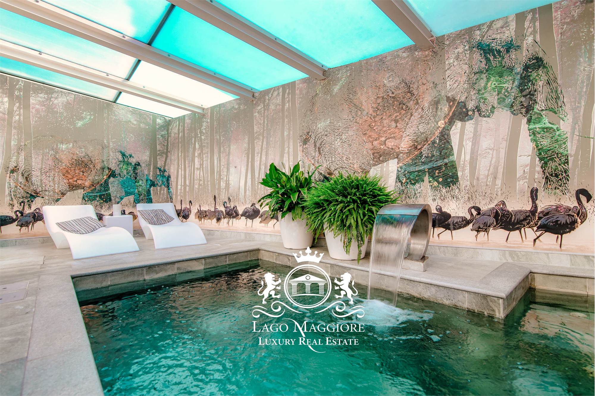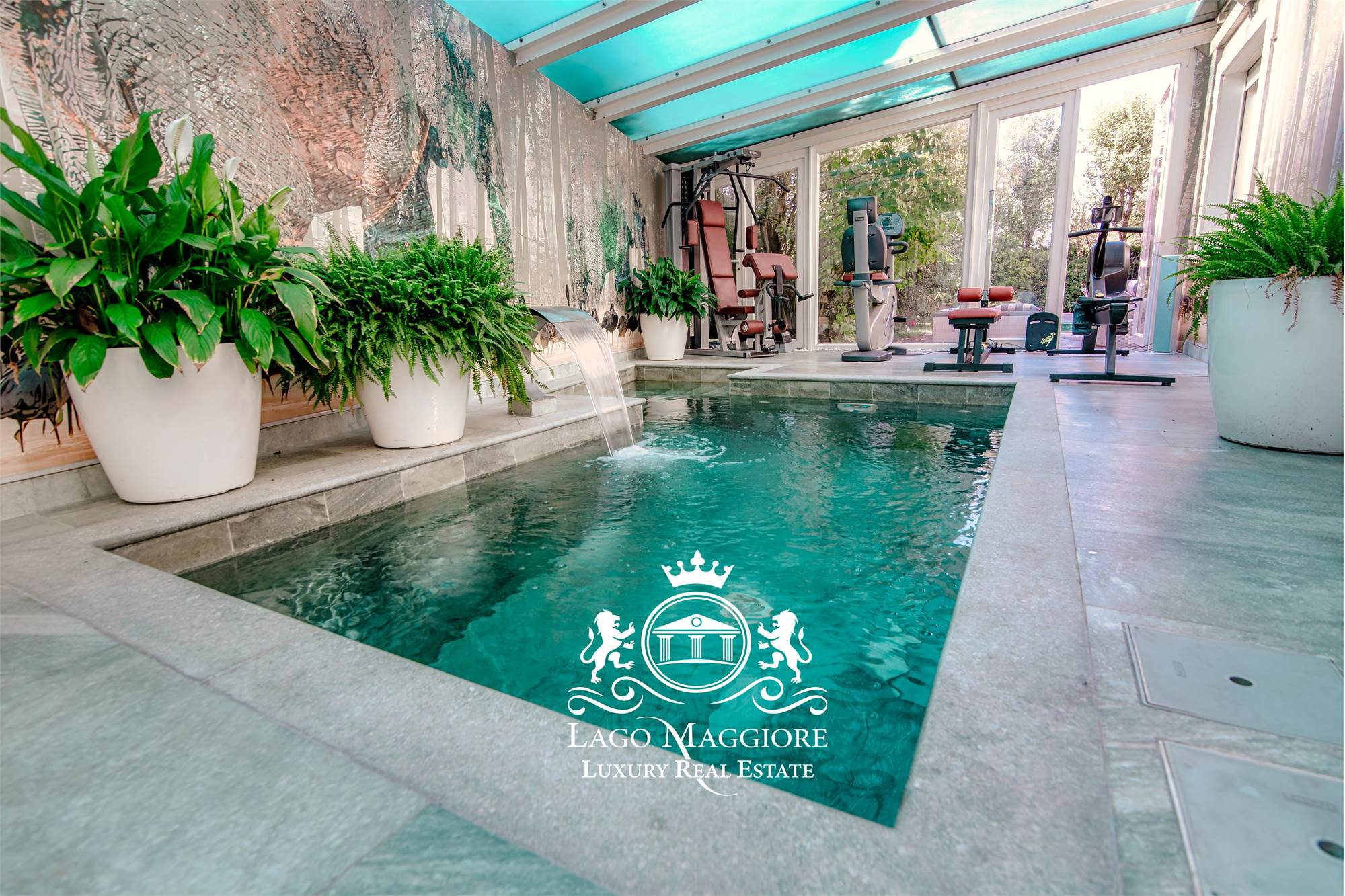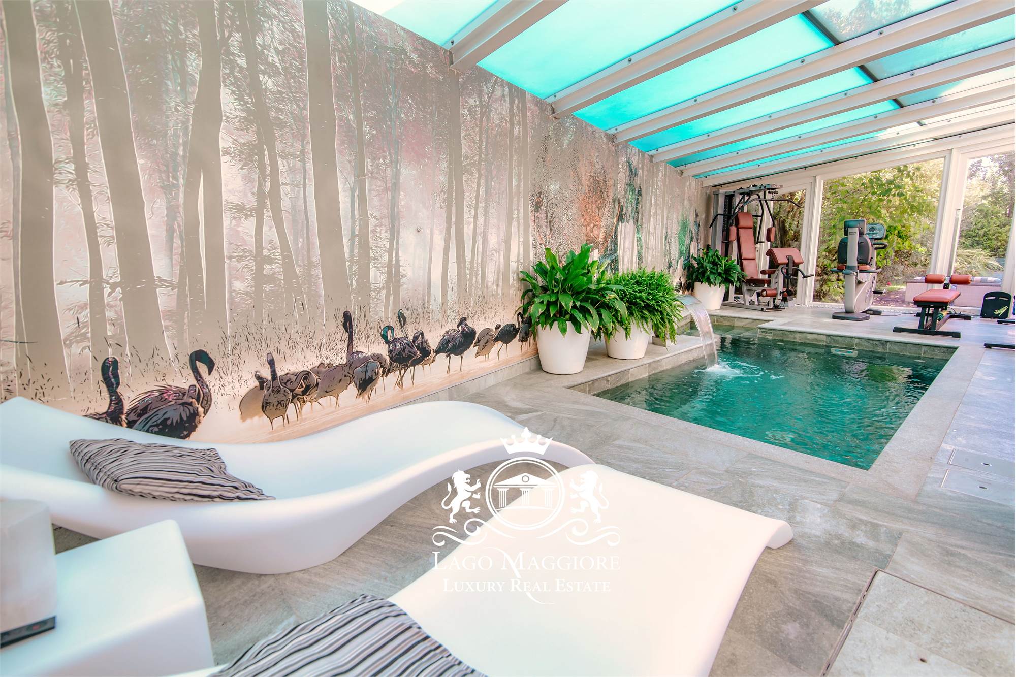 The driveway entrance leads to a large parking area with a modern canopy and a large garage. The pedestrian entrance of the villa leads us to an elegant "Entrance" that opens onto a majestic living room divided into a dining area and a sofa area, where style and functionality blend seamlessly, ideal for hosting and entertaining. The living room overlooks sublime outdoor areas equipped with lounges, dining areas, and a beautiful infinity heated pool clad in noble stone. The living floor is completed with a study, a large kitchen connected to a dining room, laundry room, bathroom. A marble staircase and an elevator lead to the first upper floor, with four bedrooms with "en suite" bathrooms and dressing rooms where every detail is designed to offer comfort and privacy. On the second upper floor, the master area is a haven of tranquility and luxury, beautifully divided into a master bedroom with en suite bathroom with a whirlpool tub and shower, a large dressing room, and a beautiful terrace overlooking the garden below, ideal for moments of extreme relaxation. On the third upper floor, a large terrace dominates the property with a splendid 360-degree panoramic view. The property is completed by a splendid wellness area offering everything desirable for ultimate relaxation: a beautiful indoor stone pool with a counter-current swim, a sauna, a gym, and a basement with a wine cellar, warehouses, and technical rooms. The villa has state-of-the-art systems, with underfloor heating and cooling system with independent controls for each room.