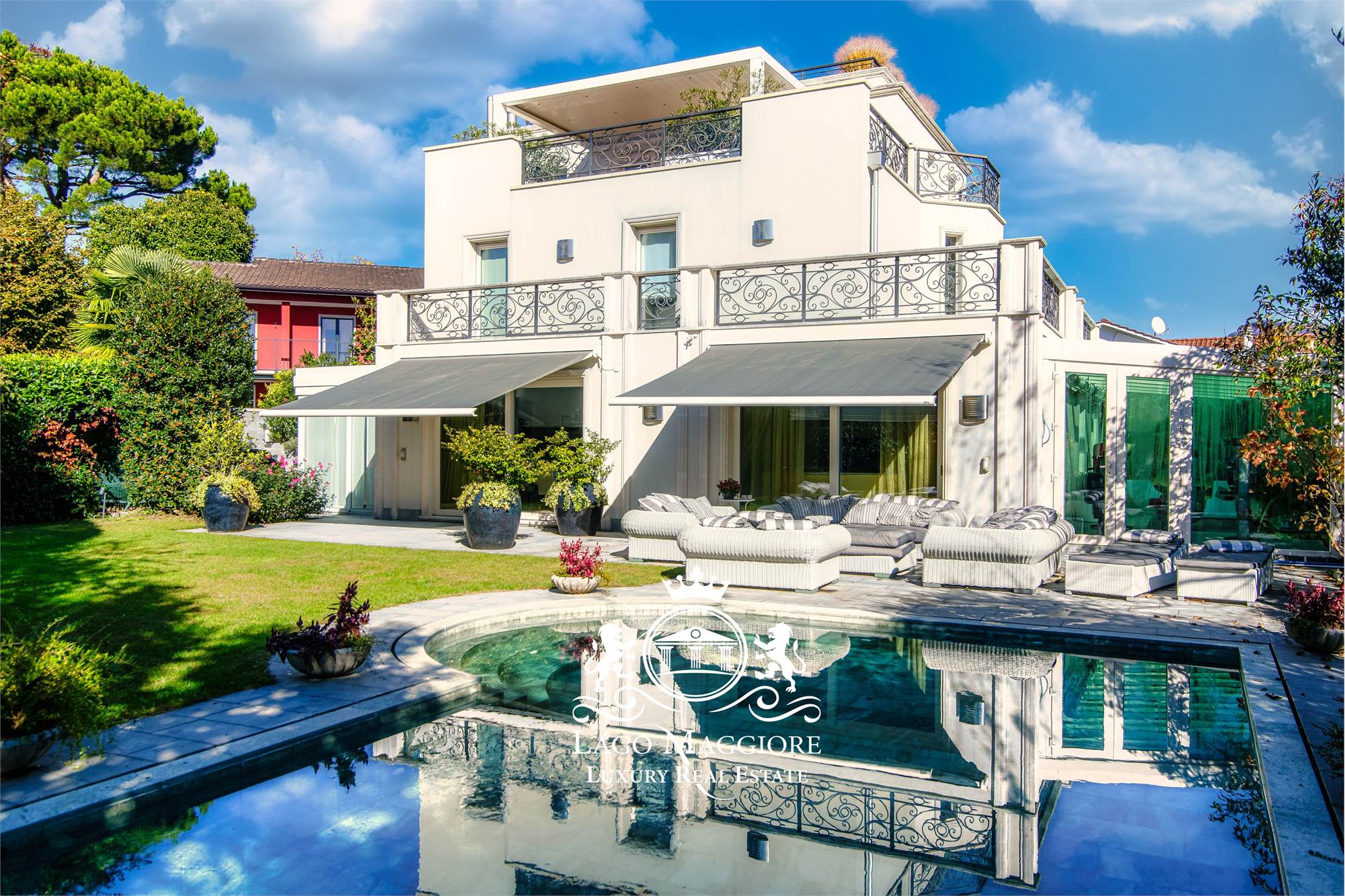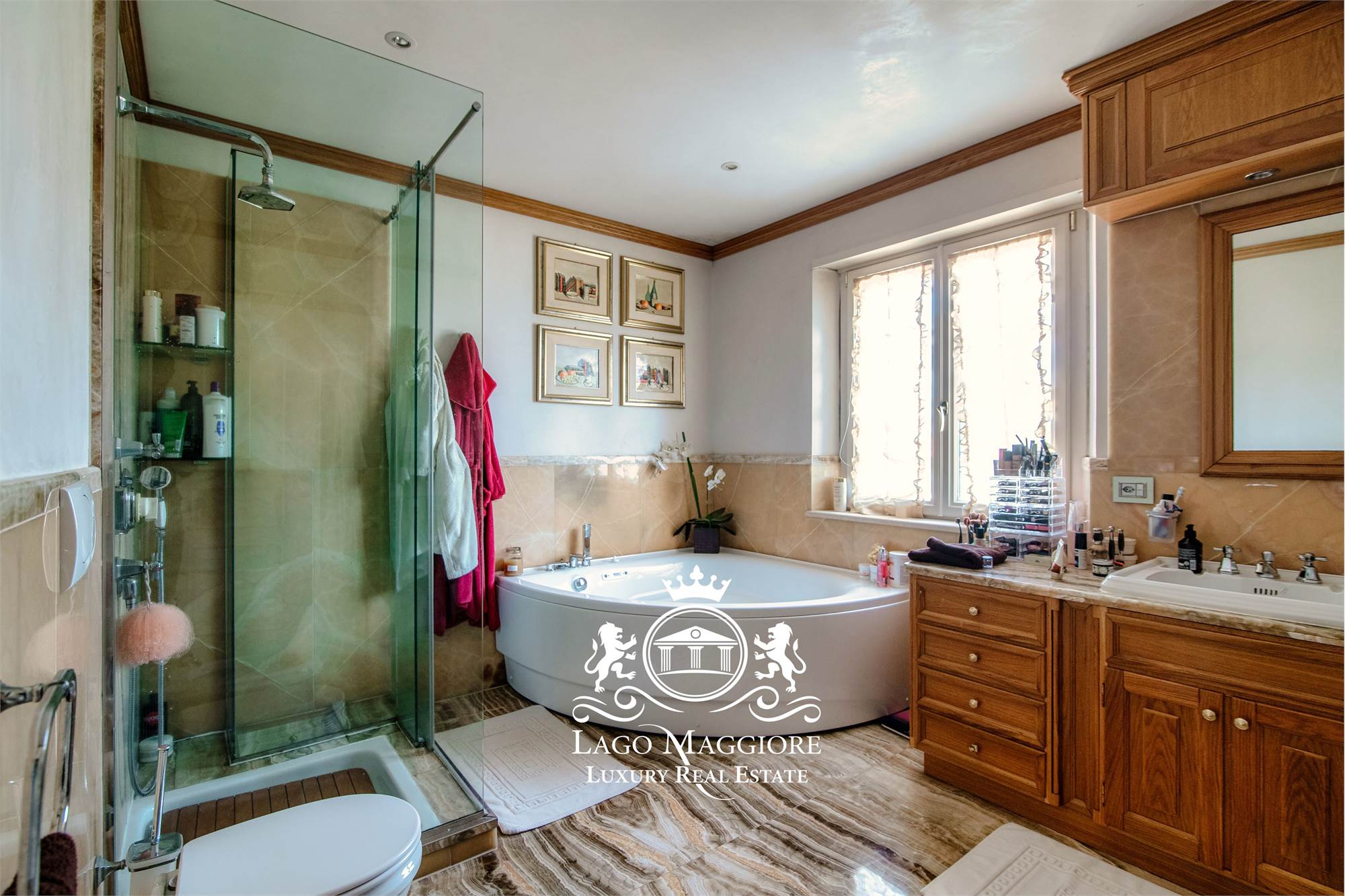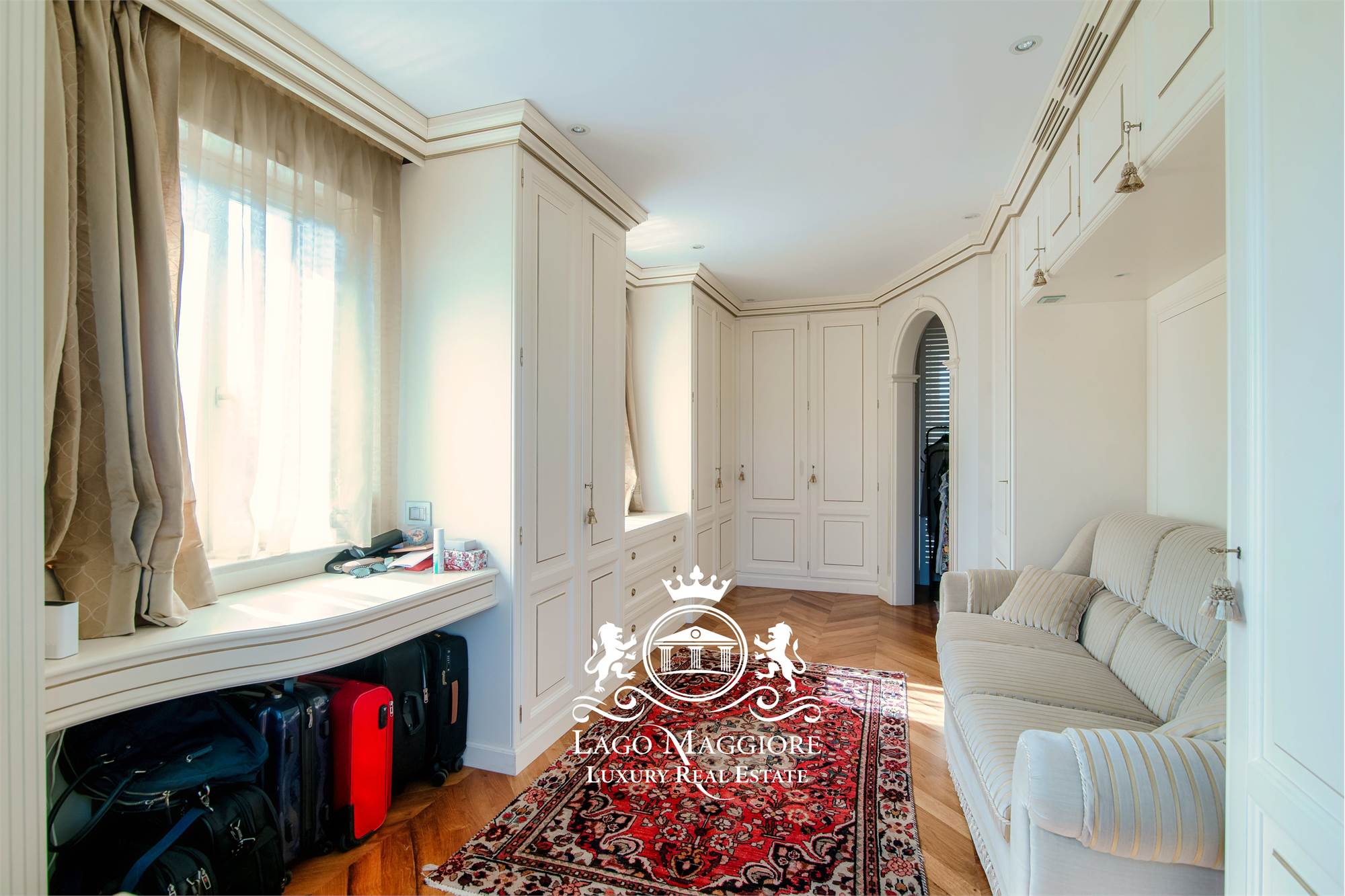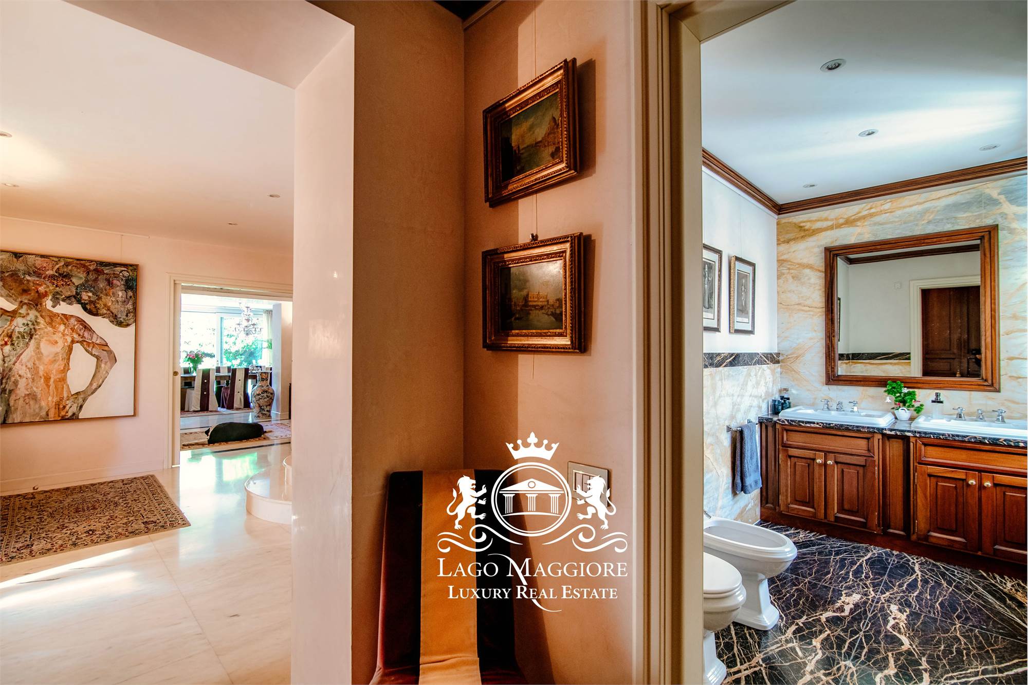 The driveway entrance leads to a large parking area with a modern canopy and a large garage. The pedestrian entrance of the villa leads us to an elegant "Entrance" that opens onto a majestic living room divided into a dining area and a sofa area, where style and functionality blend seamlessly, ideal for hosting and entertaining. The living room overlooks sublime outdoor areas equipped with lounges, dining areas, and a beautiful infinity heated pool clad in noble stone. The living floor is completed with a study, a large kitchen connected to a dining room, laundry room, bathroom. A marble staircase and an elevator lead to the first upper floor, with four bedrooms with "en suite" bathrooms and dressing rooms where every detail is designed to offer comfort and privacy. On the second upper floor, the master area is a haven of tranquility and luxury, beautifully divided into a master bedroom with en suite bathroom with a whirlpool tub and shower, a large dressing room, and a beautiful terrace overlooking the garden below, ideal for moments of extreme relaxation. On the third upper floor, a large terrace dominates the property with a splendid 360-degree panoramic view. The property is completed by a splendid wellness area offering everything desirable for ultimate relaxation: a beautiful indoor stone pool with a counter-current swim, a sauna, a gym, and a basement with a wine cellar, warehouses, and technical rooms. The villa has state-of-the-art systems, with underfloor heating and cooling system with independent controls for each room.