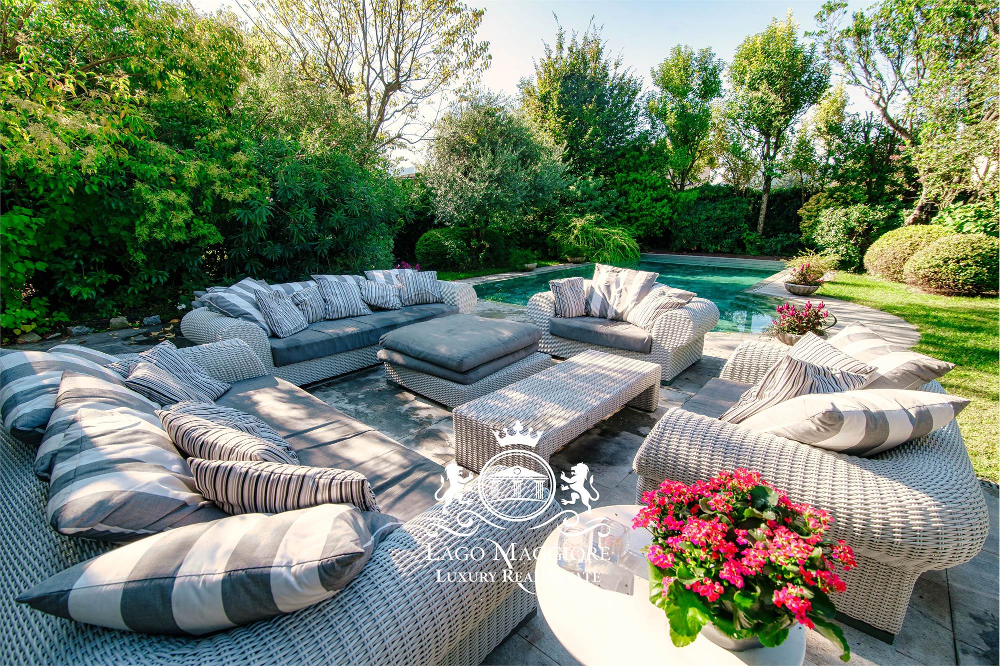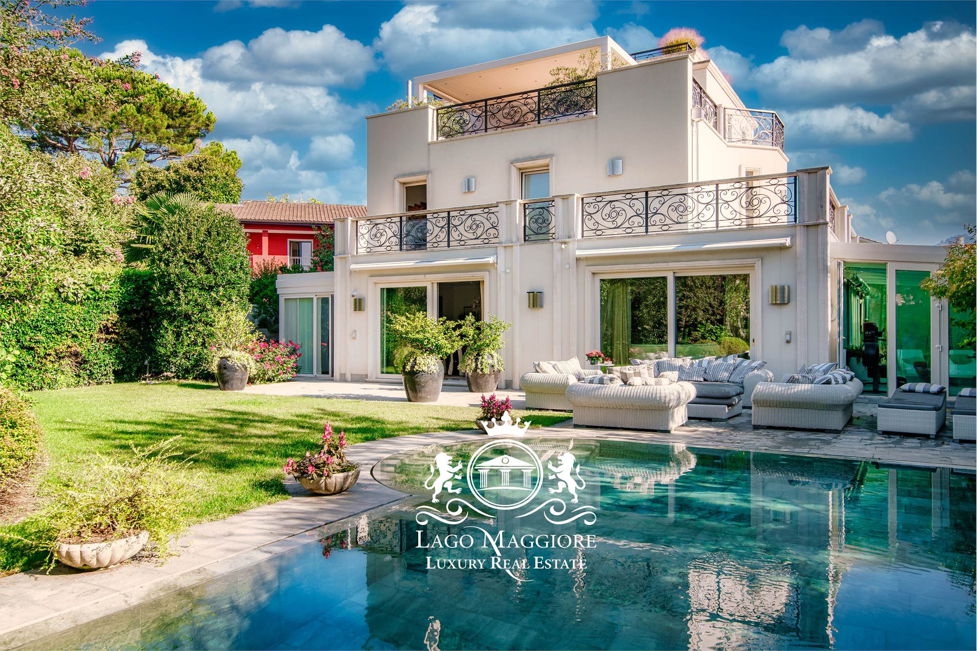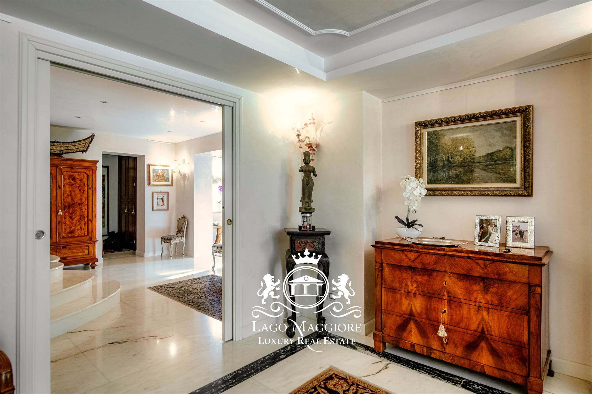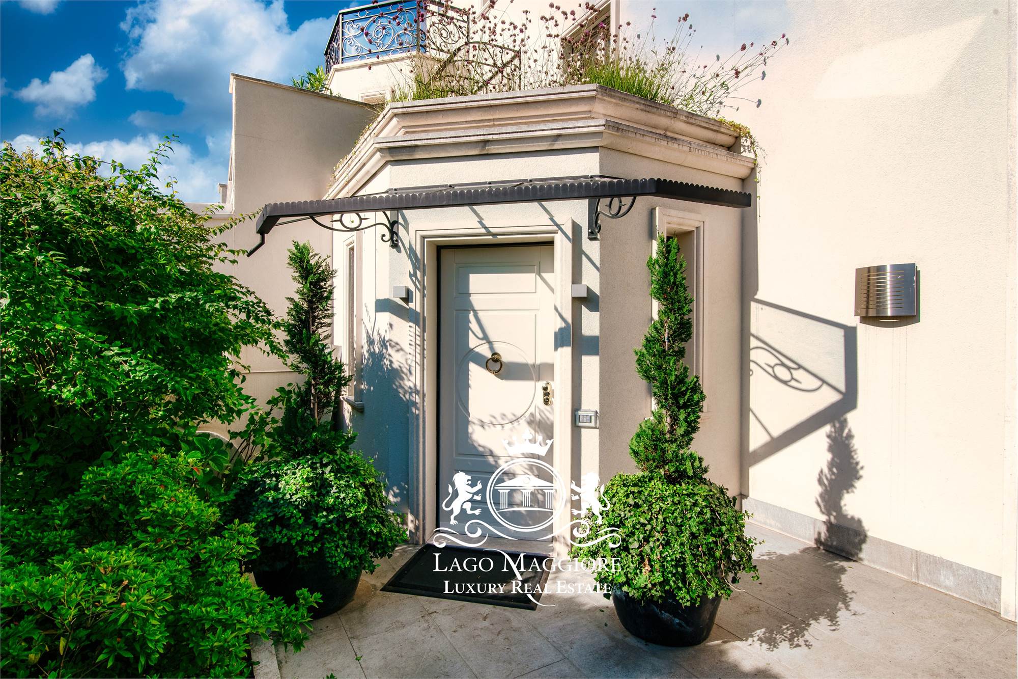 The driveway entrance leads to a large parking area with a modern canopy and a large garage. The pedestrian entrance of the villa leads us to an elegant "Entrance" that opens onto a majestic living room divided into a dining area and a sofa area, where style and functionality blend seamlessly, ideal for hosting and entertaining. The living room overlooks sublime outdoor areas equipped with lounges, dining areas, and a beautiful infinity heated pool clad in noble stone. The living floor is completed with a study, a large kitchen connected to a dining room, laundry room, bathroom. A marble staircase and an elevator lead to the first upper floor, with four bedrooms with "en suite" bathrooms and dressing rooms where every detail is designed to offer comfort and privacy. On the second upper floor, the master area is a haven of tranquility and luxury, beautifully divided into a master bedroom with en suite bathroom with a whirlpool tub and shower, a large dressing room, and a beautiful terrace overlooking the garden below, ideal for moments of extreme relaxation. On the third upper floor, a large terrace dominates the property with a splendid 360-degree panoramic view. The property is completed by a splendid wellness area offering everything desirable for ultimate relaxation: a beautiful indoor stone pool with a counter-current swim, a sauna, a gym, and a basement with a wine cellar, warehouses, and technical rooms. The villa has state-of-the-art systems, with underfloor heating and cooling system with independent controls for each room.
