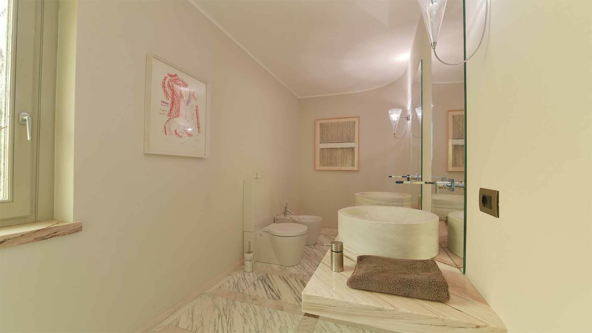 The villa is equipped with top-of-the-line security systems: alarm system, video surveillance, wrought iron grilles, double-glazed security windows, and armored doors even in internal spaces, ensuring comfort, tranquility, safety, and privacy in every corner of the residence.