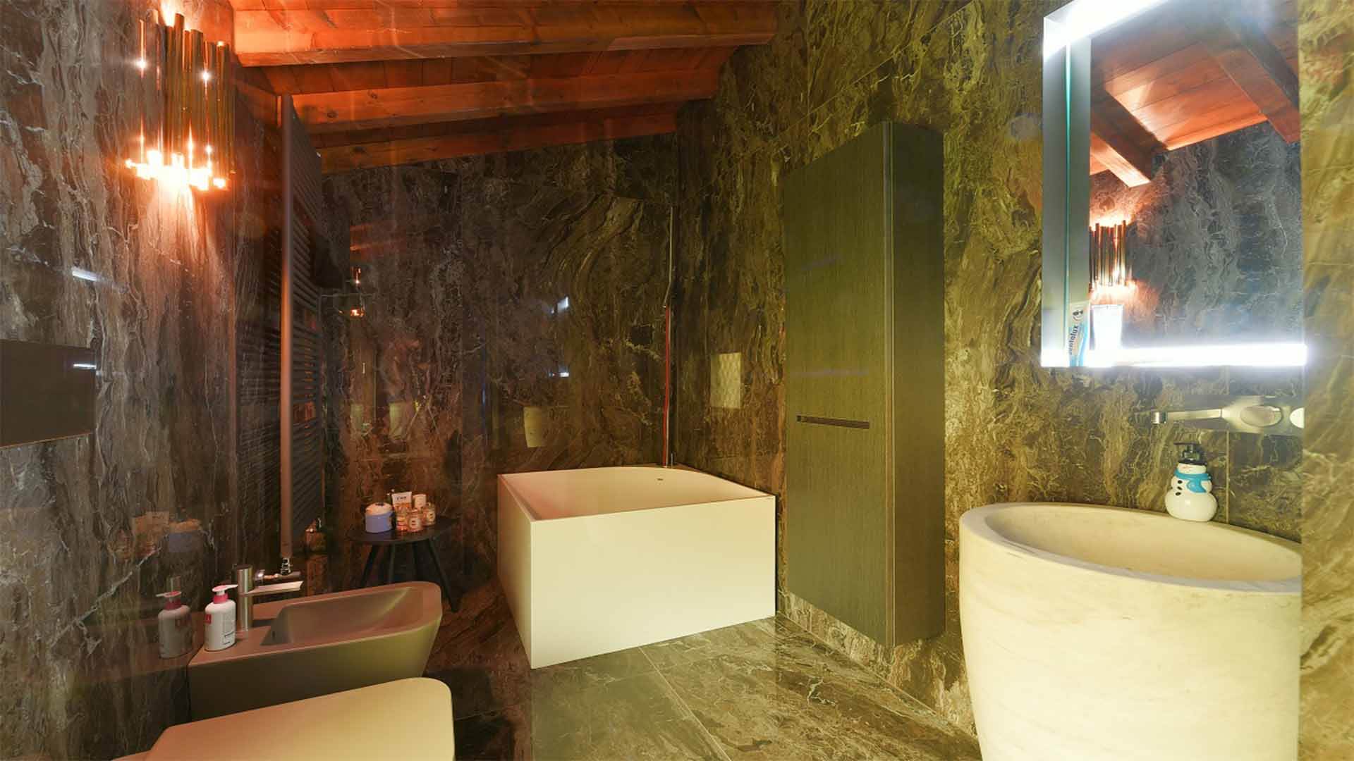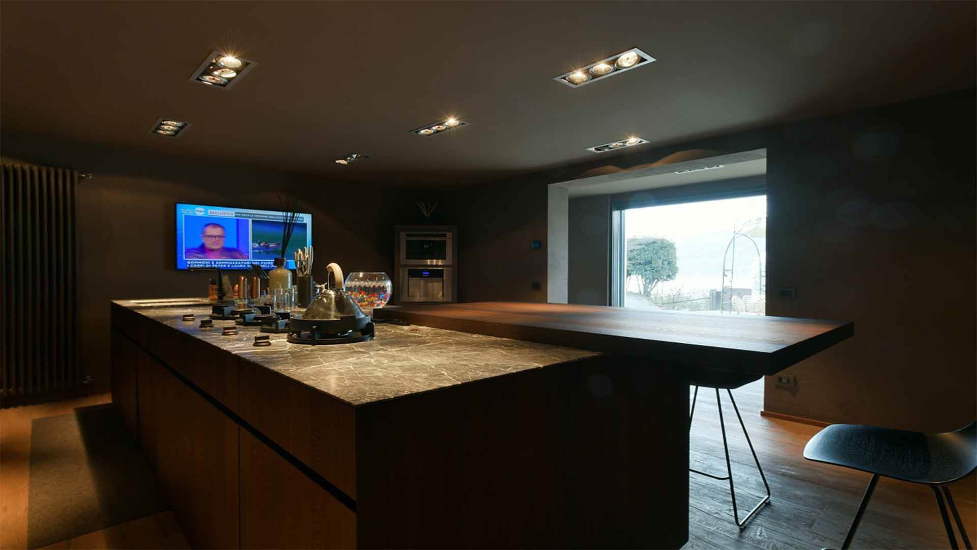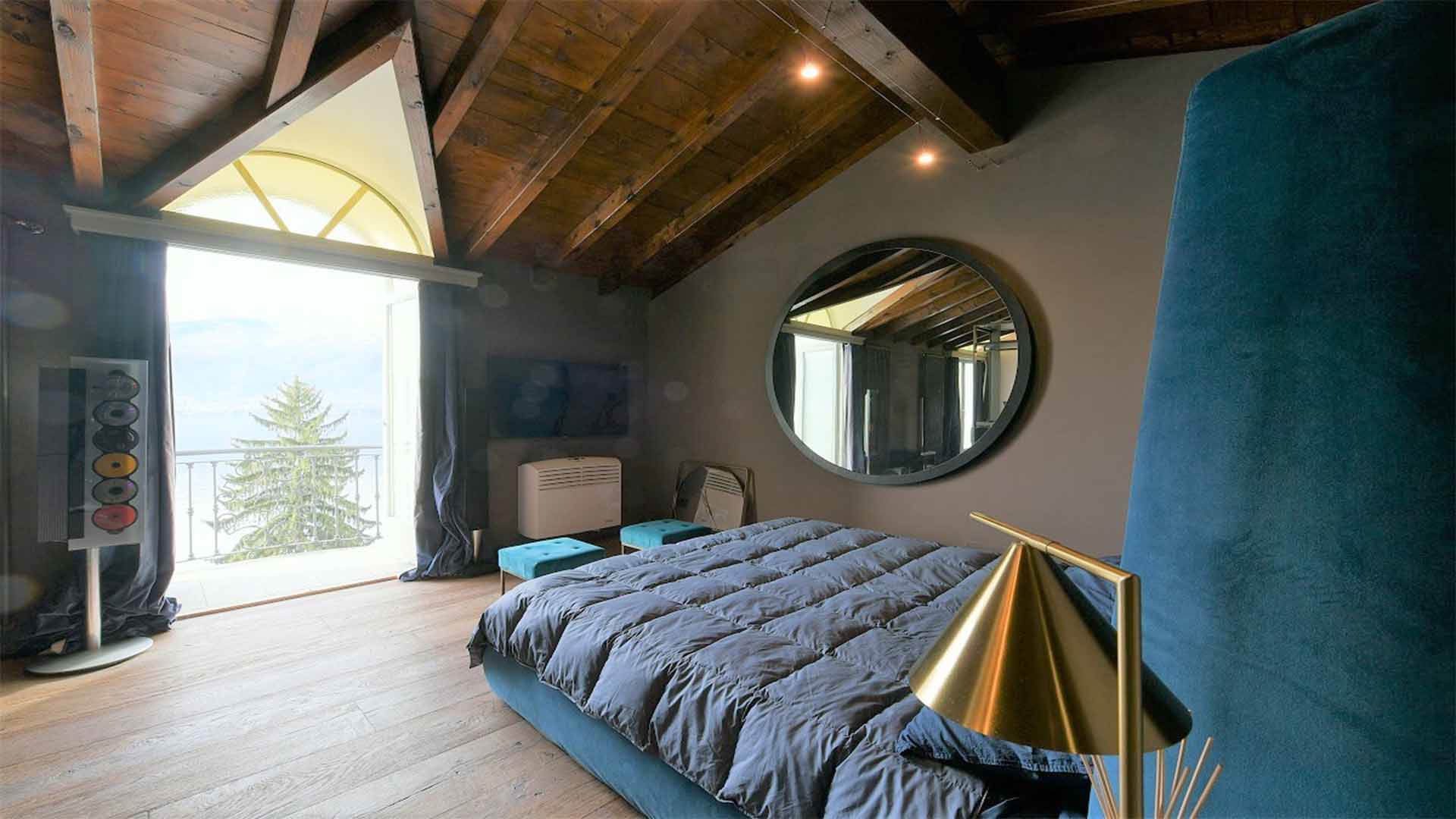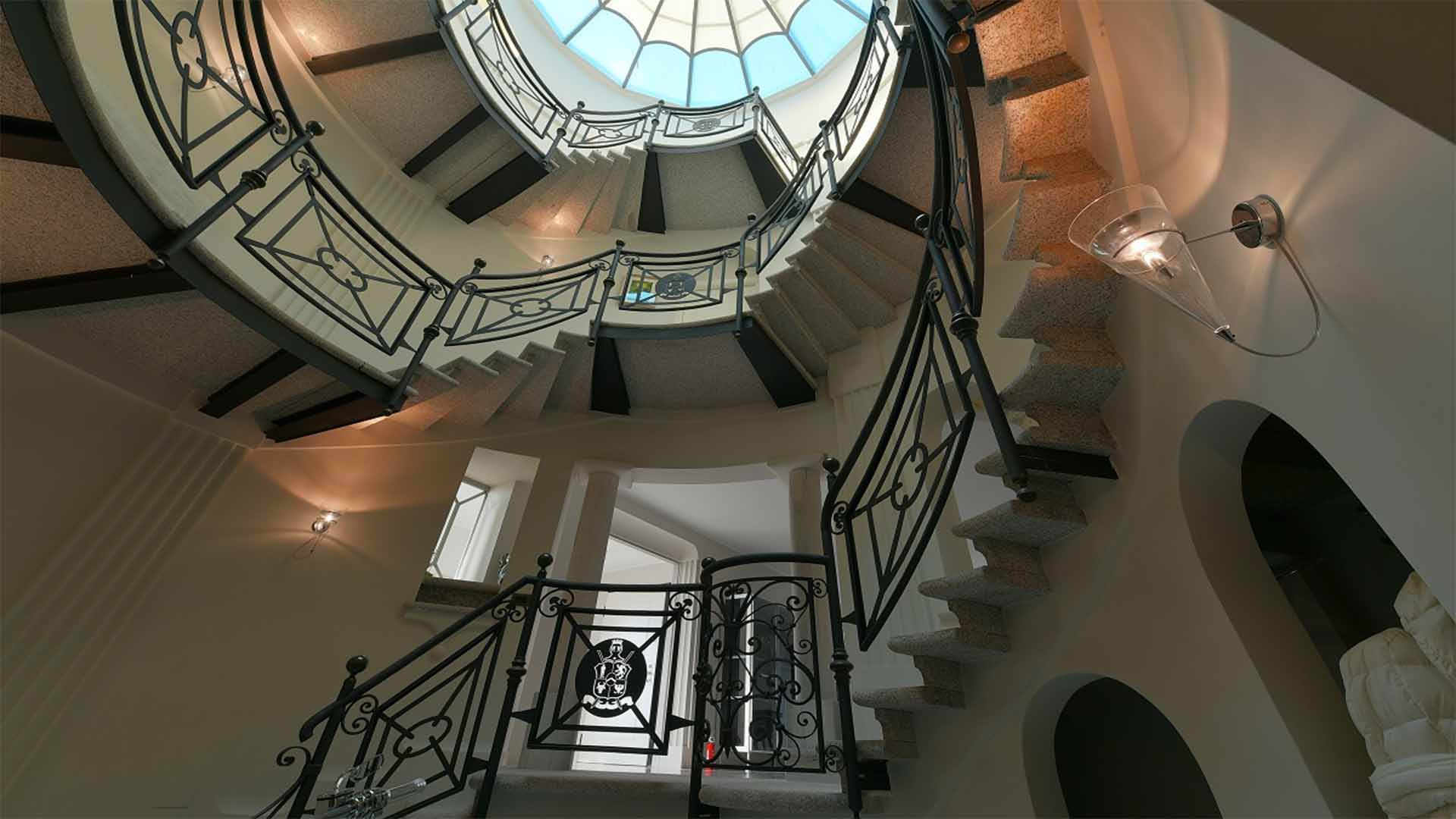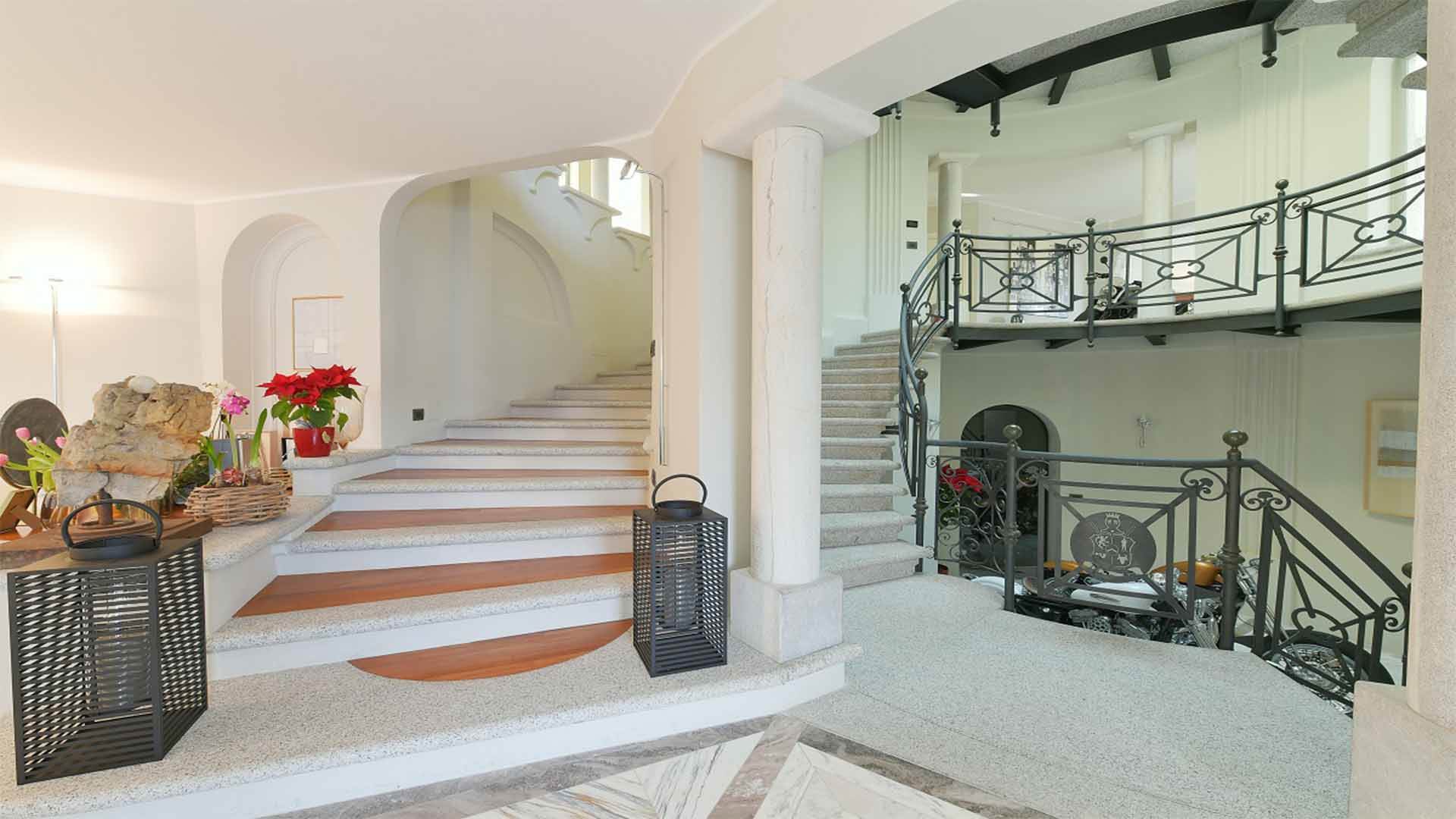 This truly unique villa spans three levels, serviced by a spectacular stone and wood staircase crowned by an impressive dome. The residence is characterized by exceptional brightness, with each room enjoying a spectacular panoramic view of the lake.