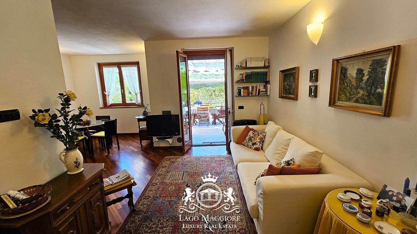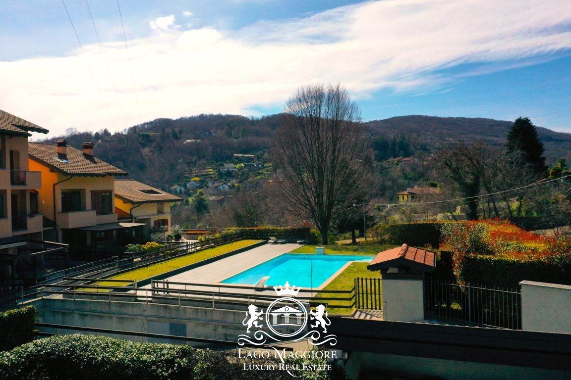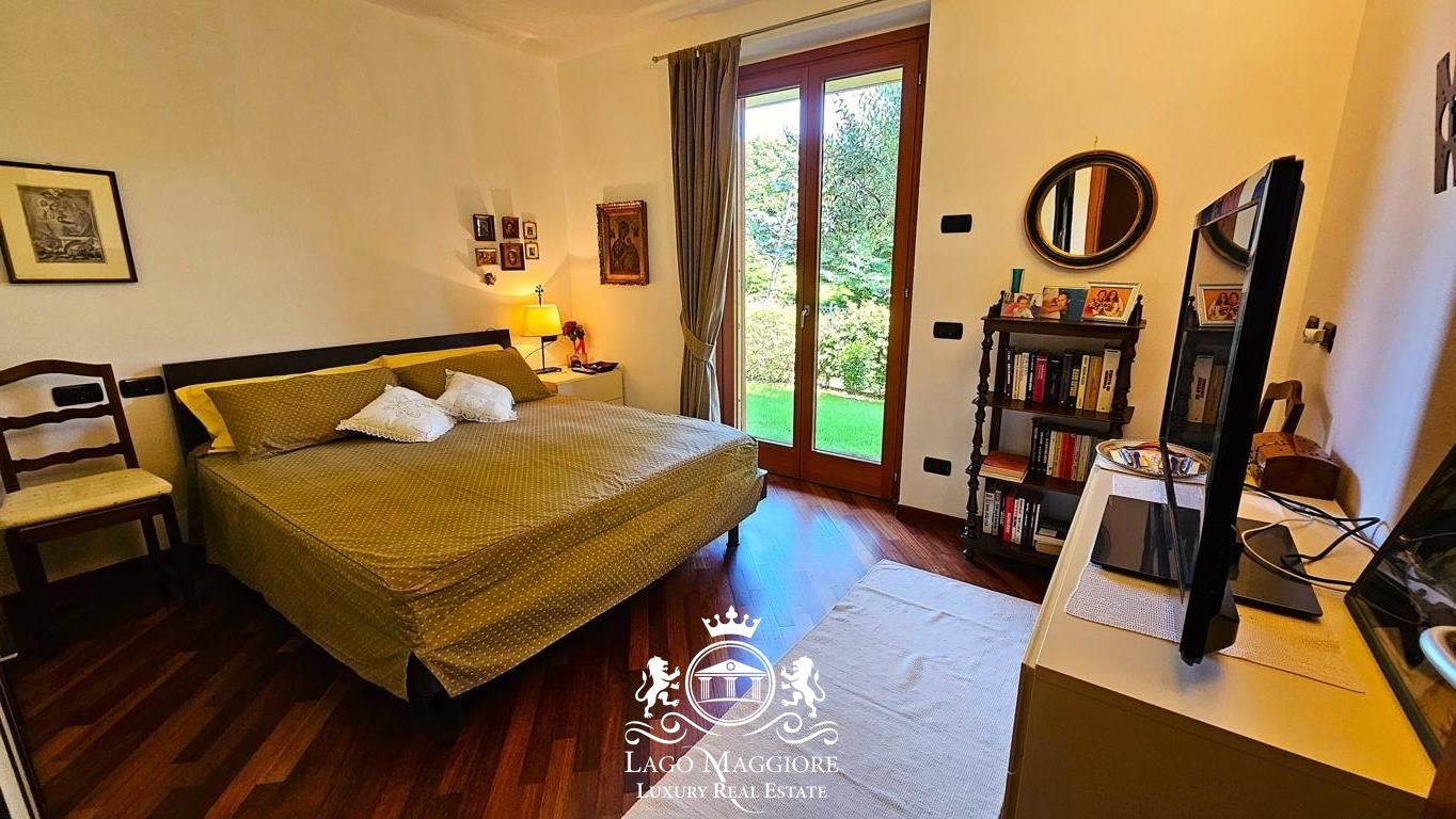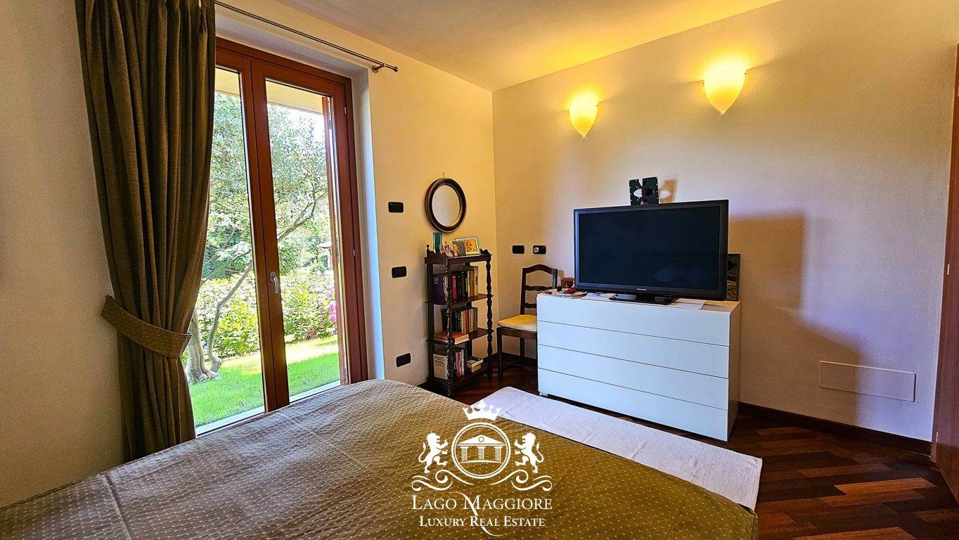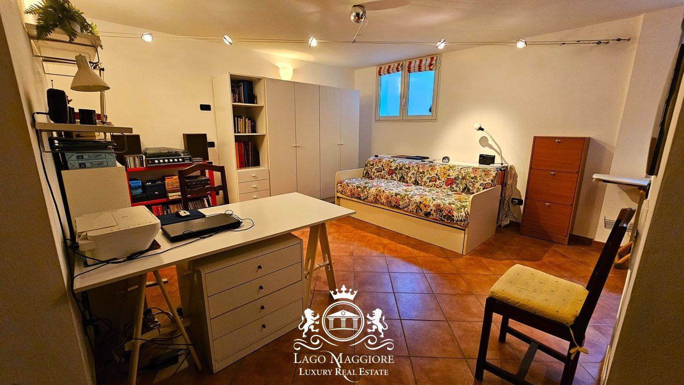 Con mandato in esclusiva proponiamo sulle prime alture di Meina, perla indiscussa del Lago Maggiore, nel pregevole complesso con piscina “Residence Selene”, signorile luminoso appartamento con ampi spazi esterni privati. L’appartamento suddiviso su due livelli ha una superficie totale di circa mq 100 oltre a portici e giardino di circa mq 90. Dall’ingresso principale del complesso residenziale si accede tramite vialetto all’appartamento, un primo cancellino ci conduce in una signorile ampia area esterna piastrellata privata dalla quale si gode di una splendida vista sulla confinante piscina, completa sul retro dell’appartamento una seconda area privata prendisole a prato e piantumata. Internamente al piano terra l’appartamento dispone di un ampio luminoso salone diviso in area divani ed area pranzo con angolo cucina, dal salone si accede alla zona notte, un’ampia camera matrimoniale collegata con il giardino al retro ed un bagno; serviti da scala in legno artigianale si accede al piano inferiore, uno spazioso locale openspace con angolo cucina e bagno, dal locale serviti da porta di sicurezza si accede comodamente al garage.