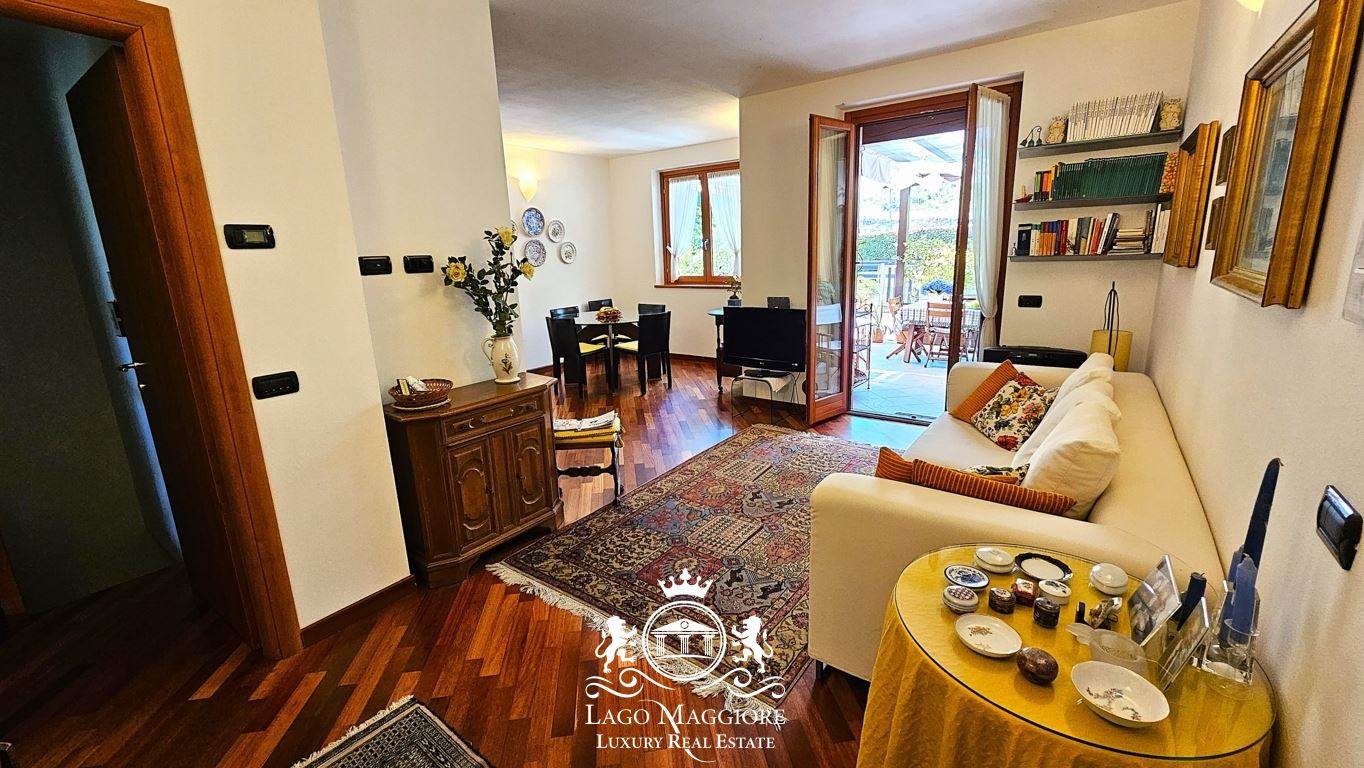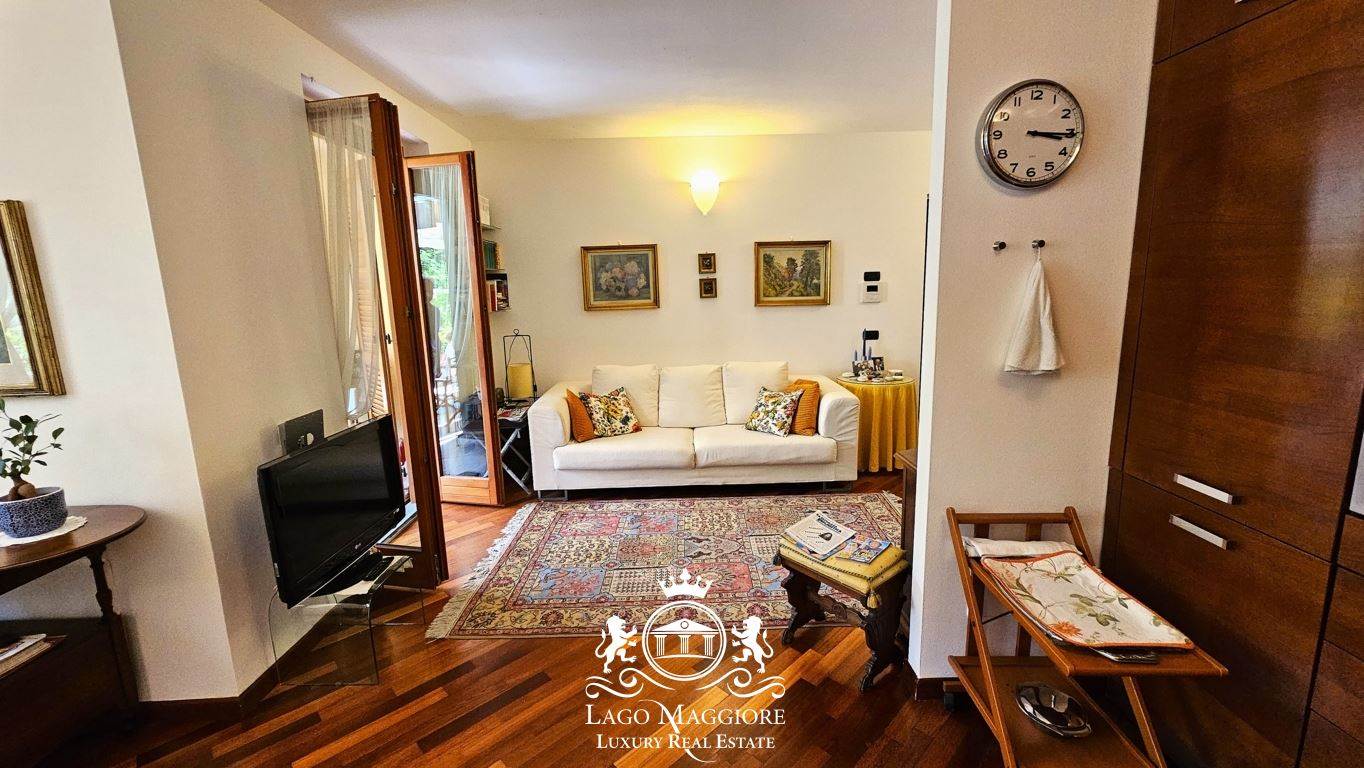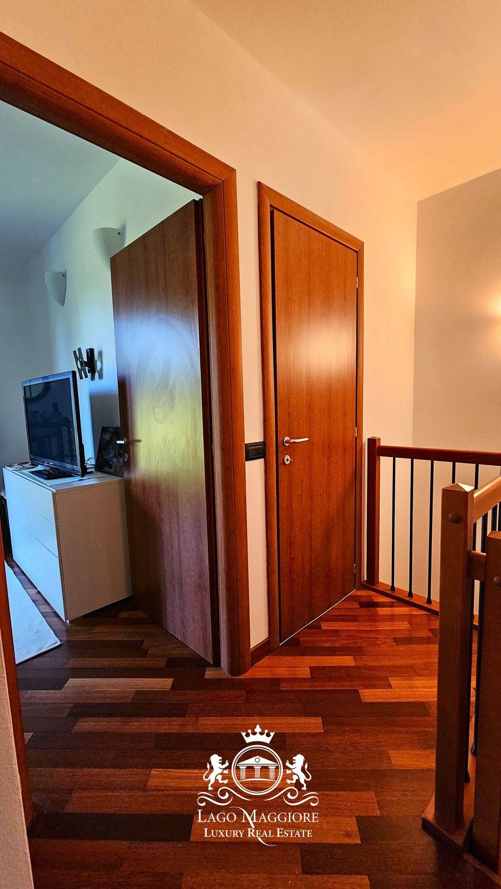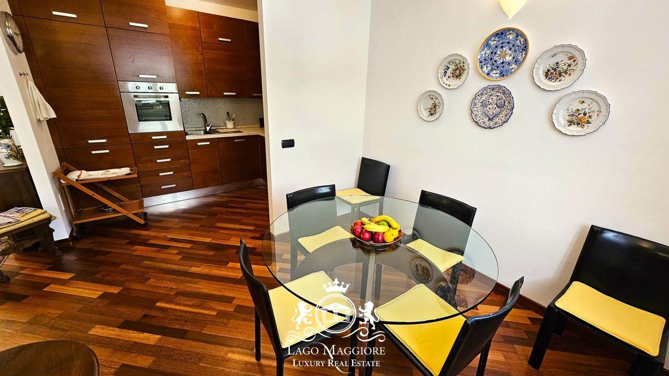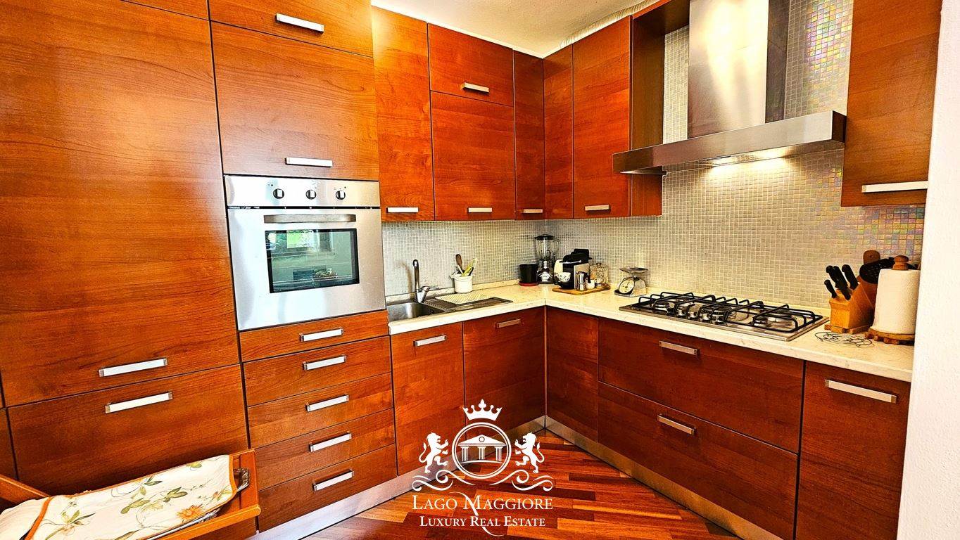 Con mandato in esclusiva proponiamo sulle prime alture di Meina, perla indiscussa del Lago Maggiore, nel pregevole complesso con piscina “Residence Selene”, signorile luminoso appartamento con ampi spazi esterni privati. L’appartamento suddiviso su due livelli ha una superficie totale di circa mq 100 oltre a portici e giardino di circa mq 90. Dall’ingresso principale del complesso residenziale si accede tramite vialetto all’appartamento, un primo cancellino ci conduce in una signorile ampia area esterna piastrellata privata dalla quale si gode di una splendida vista sulla confinante piscina, completa sul retro dell’appartamento una seconda area privata prendisole a prato e piantumata. Internamente al piano terra l’appartamento dispone di un ampio luminoso salone diviso in area divani ed area pranzo con angolo cucina, dal salone si accede alla zona notte, un’ampia camera matrimoniale collegata con il giardino al retro ed un bagno; serviti da scala in legno artigianale si accede al piano inferiore, uno spazioso locale openspace con angolo cucina e bagno, dal locale serviti da porta di sicurezza si accede comodamente al garage.