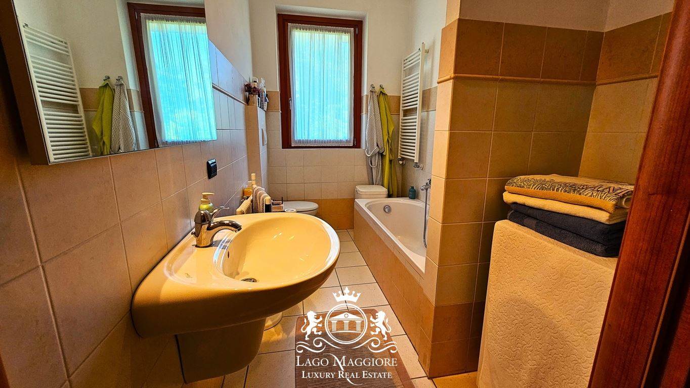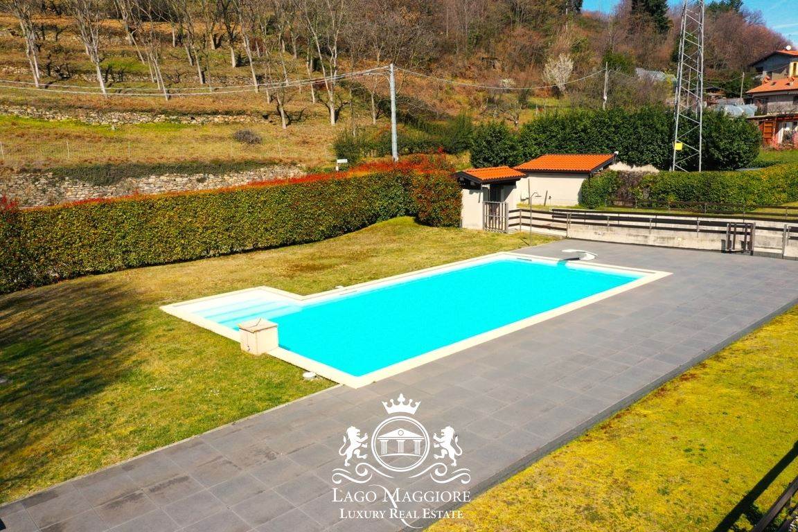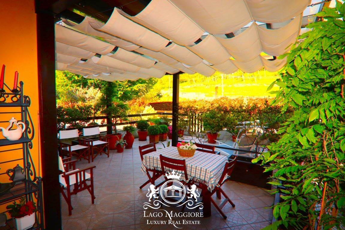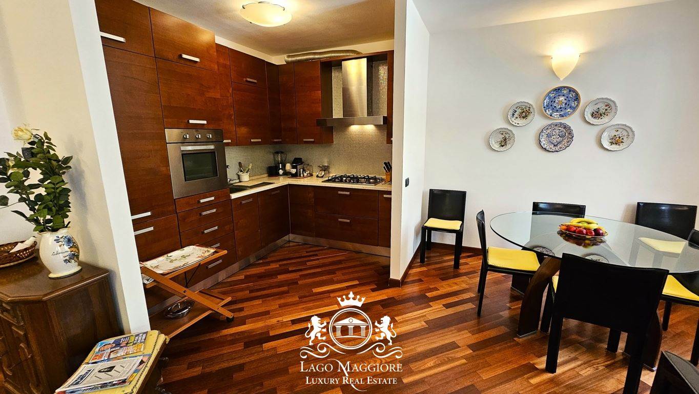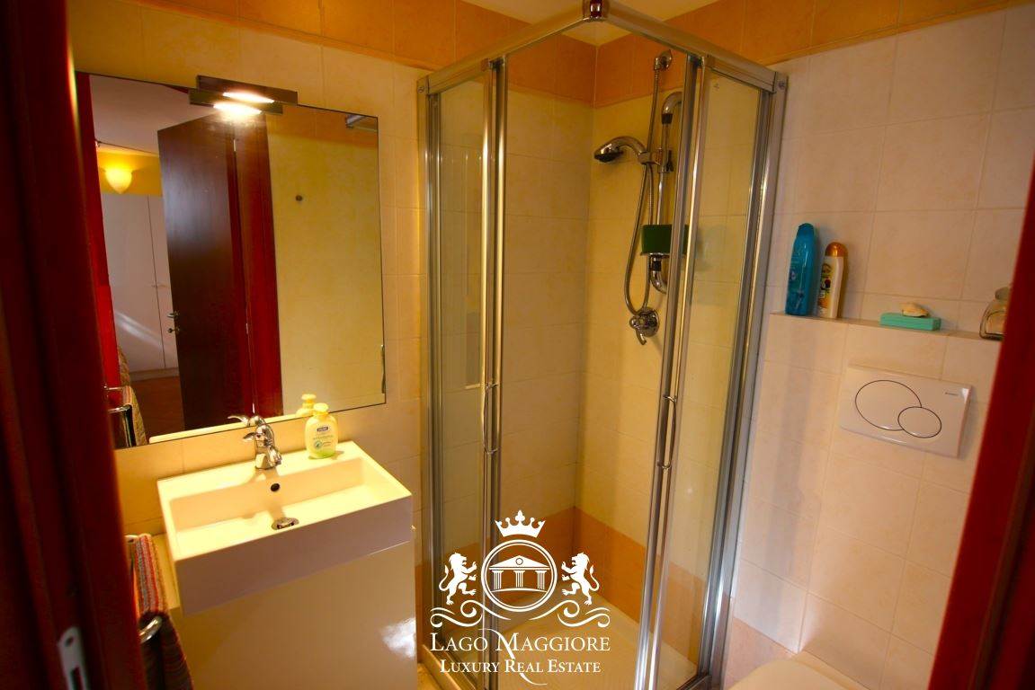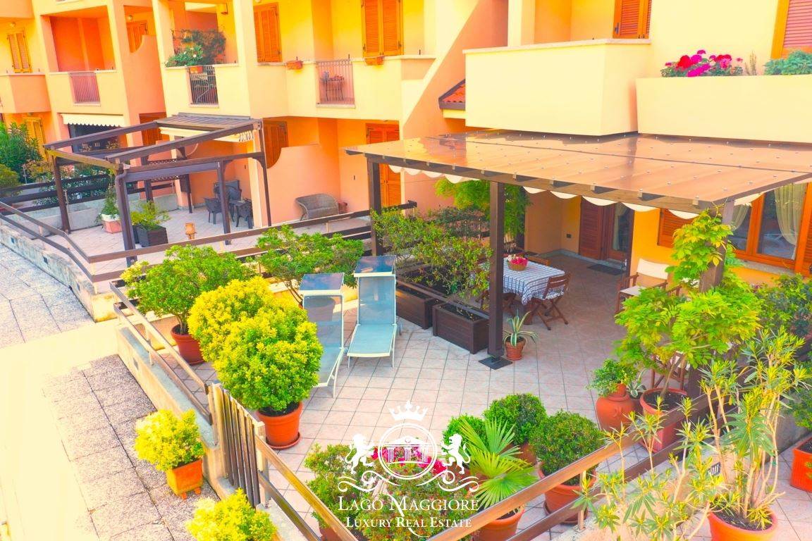 Con mandato in esclusiva proponiamo sulle prime alture di Meina, perla indiscussa del Lago Maggiore, nel pregevole complesso con piscina “Residence Selene”, signorile luminoso appartamento con ampi spazi esterni privati. L’appartamento suddiviso su due livelli ha una superficie totale di circa mq 100 oltre a portici e giardino di circa mq 90. Dall’ingresso principale del complesso residenziale si accede tramite vialetto all’appartamento, un primo cancellino ci conduce in una signorile ampia area esterna piastrellata privata dalla quale si gode di una splendida vista sulla confinante piscina, completa sul retro dell’appartamento una seconda area privata prendisole a prato e piantumata. Internamente al piano terra l’appartamento dispone di un ampio luminoso salone diviso in area divani ed area pranzo con angolo cucina, dal salone si accede alla zona notte, un’ampia camera matrimoniale collegata con il giardino al retro ed un bagno; serviti da scala in legno artigianale si accede al piano inferiore, uno spazioso locale openspace con angolo cucina e bagno, dal locale serviti da porta di sicurezza si accede comodamente al garage.