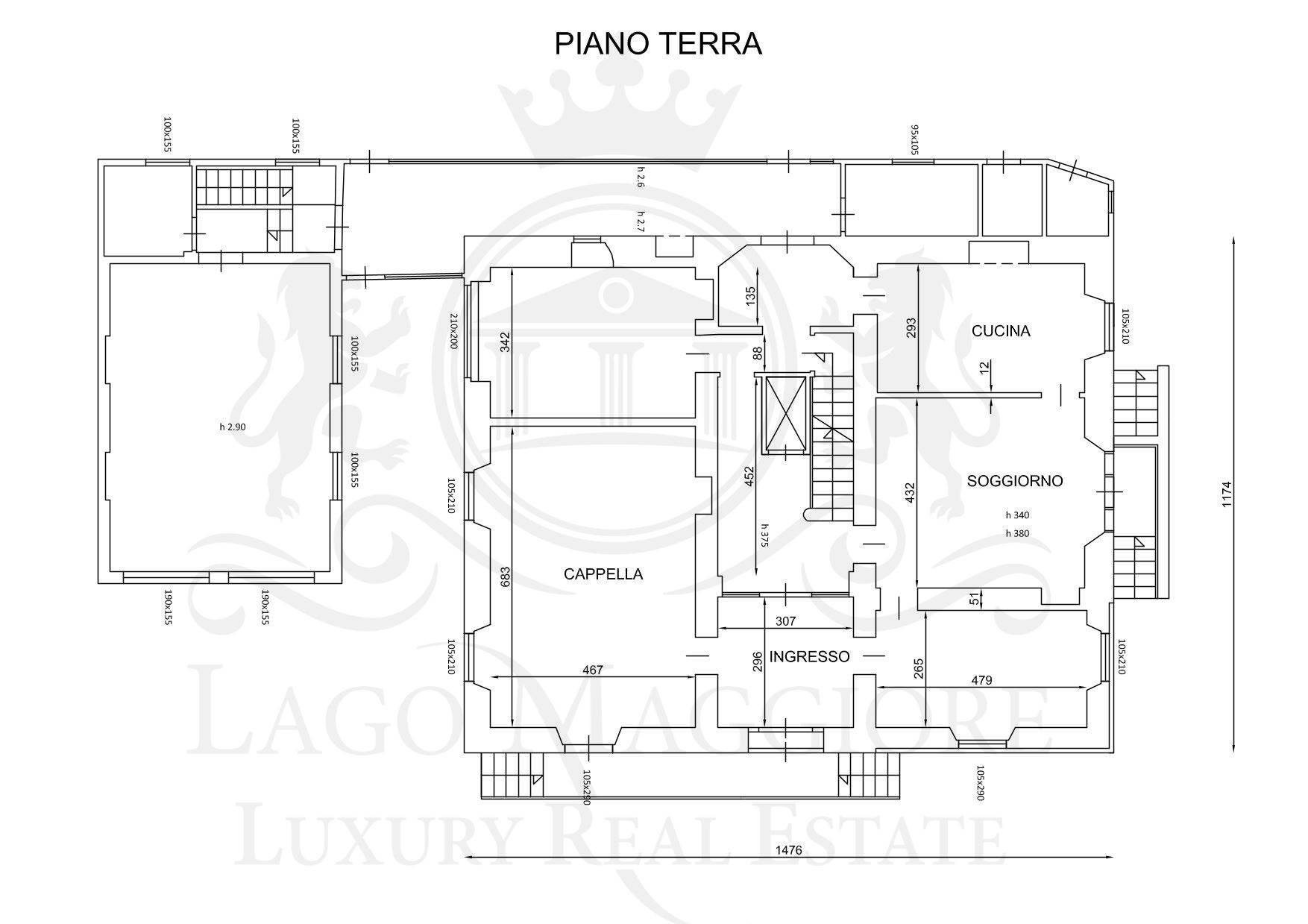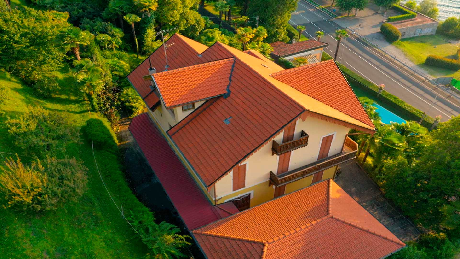 Главная вилла площадью более 650 квадратных метров состоит из 22 комнат и расположена на четырех уровнях, обслуживаемых удобным лифтом: на цокольном этаже подвалы, технические и подсобные помещения, на первом этаже престижный парадный вход с фресками, ведущий в гостиную с видом на озеро и часовню с алтарем из прекрасного мрамора, откуда в свою очередь открывается прекрасный панорамный вид, столовая, соединенная с кухней и подсобные помещения при кухне дополняют картину, на первом и втором этаже десять спален с четырьмя ванными комнатами, из которых открывается прекрасный вид на озеро, к вилле примыкает большая двухуровневая пристройка. Рядом с въездом на территорию виллы находится второй трехуровневый дом для гостей площадью более 300 квадратных метров, со столовыми, кухней, кладовыми, большой верандой, семью спальнями с шестью ванными комнатами и прачечной. К дому примыкает большой гараж площадью около 45 кв.m