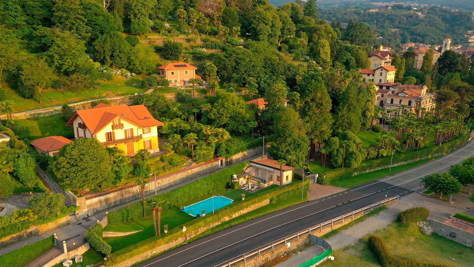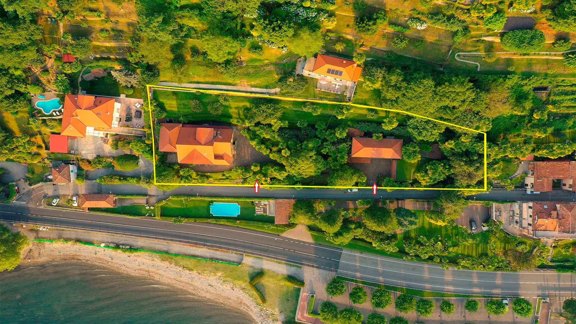 Роскошное поместье располагает парком площадью более 4000 метров, на территории которого находится вилла Квинто, пристройка, соединенная с основной виллой, и большое здание гостевого дома. Особняк расположен горизонтально и параллельно соседнему (40 м) берегу озера, так что из любой его части открывается прекрасный панорамный вид. Вилла обладает исключительной приватностью, защищена от шума и находится в очень удобном месте по отношению к услугам, магазинам и большому пляжу на берегу озера.